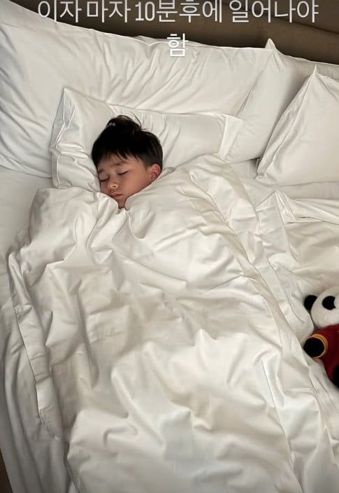 지난 1일 샘 해밍턴과 그의 아내 정유미 씨가 관리하는 첫째 아들 윌리엄의 인스타그램 스토리에는 "6시 경기 앞두고 잠시 눈을 붙이자마자 10분 후에 일어나야 함"이라는 문구와 함께 한 장의 사진이 게재됐다.