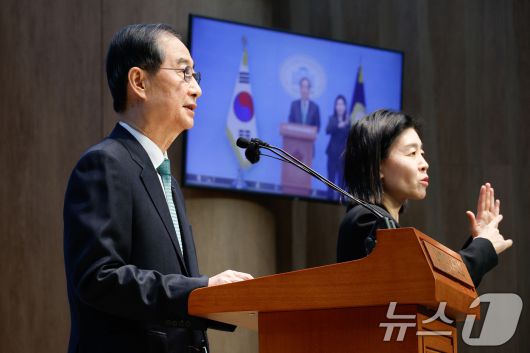(서울=뉴스1) 안은나 기자 = 한덕수 전 국무총리가 2일 오전 서울 여의도 국회 소통관에서 '국민께 드리는 약속'을 주제로 제21대 대통령 선거 출마를 선언하고 있다. 2025.5.2/뉴스1