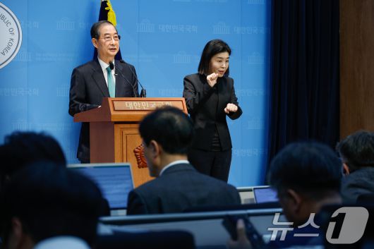 (서울=뉴스1) 안은나 기자 = 한덕수 전 국무총리가 2일 오전 서울 여의도 국회 소통관에서 '국민께 드리는 약속'을 주제로 제21대 대통령 선거 출마를 선언하고 있다. 2025.5.2/뉴스1