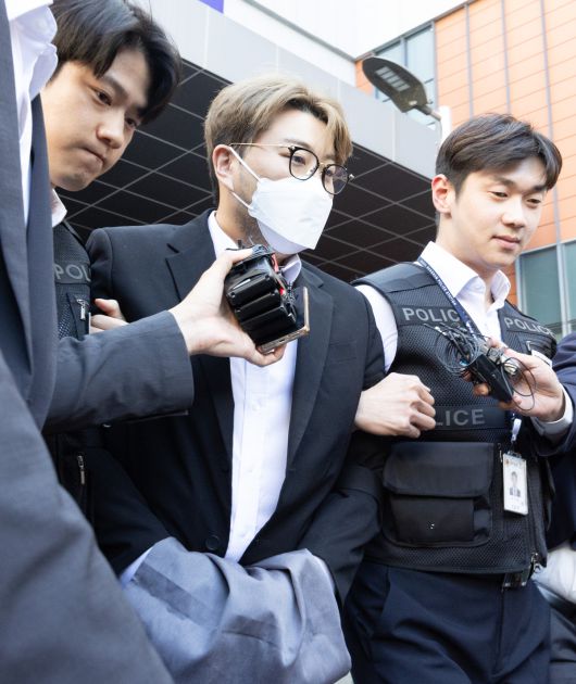 음주 뺑소니 혐의를 받고 있는 트로트 가수 김호중이 31일 오전 서울 강남경찰서에서 검찰로 송치되고 있다. 뉴시스 제공. |