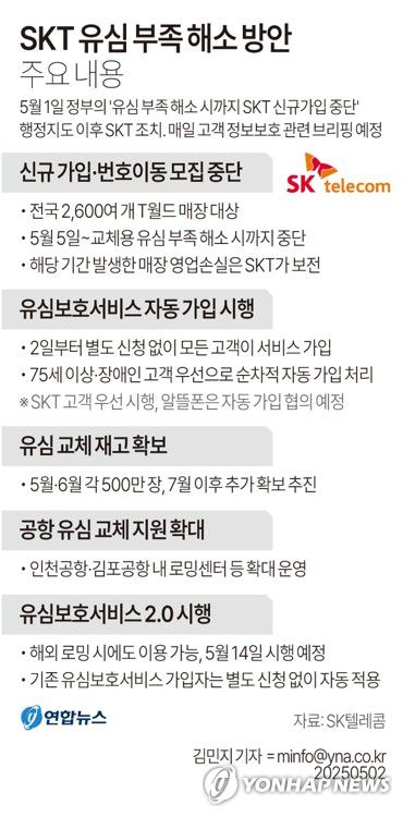 SK텔레콤은 또 고령층·장애인 등 디지털 취약 계층에 대한 배려 요구에 대해 "2일부터 모든 고객이 별도로 신청하지 않아도 유심 보호 서비스에 가입할 수 있도록 이용약관을 신고했다"고 밝혔다.