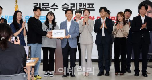 [이데일리 방인권 기자] 김문수 국민의힘 대선 경선 후보가 2일 서울 여의도 캠프에서 청년들로부터 ‘결혼·출산·육아’, ‘일자리와 경제’ 등 16개 청년정책 제안서를 전달받고 있다.