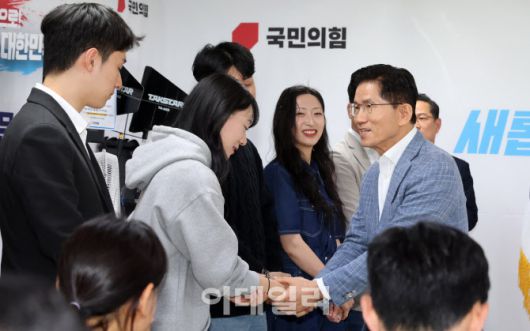 [이데일리 방인권 기자] 김문수 국민의힘 대선 경선 후보가 2일 서울 여의도 캠프에서 청년들로부터 ‘결혼·출산·육아’, ‘일자리와 경제’ 등 16개 청년정책 제안서를 전달받기 앞서, 청년들과 인사를 나누고 있다.