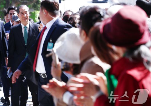 (서울=뉴스1) 김민지 기자 = 한덕수 전 국무총리가 2일 오전 서울 여의도 국회에 도착해 대통령 선거 출마 선언을 하기 위해 소통관으로 향하고 있다. 2025.5.2/뉴스1kimkim@news1.krCopyright ⓒ 뉴스1. All rights reserved. 무단 전재 및 재배포, AI학습 이용 금지.