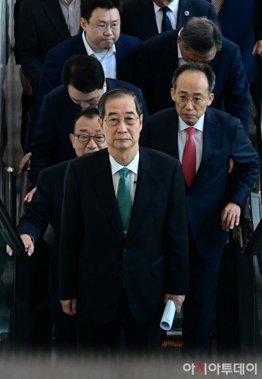 아시아투데이 이병화 기자 = 한덕수 전 국무총리가 2일 국회 소통관에서 '국민께 드리는 약속'을 주제로 제21대 대통령 선거 출마를 선언하기 위해 입장하고 있다. ⓒ "젊은 파워, 모바일 넘버원 아시아투데이"