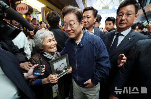 [철원=뉴시스] 조성우 기자 = 민심을 청취하는 '경청 투어'에 나선 이재명 더불어민주당 대선후보가 2일 오전 강원도 철원군 동송시외버스공용터미널 인근에서 주민을 만나 인사하고 있다. 2025.05.02. xconfind@newsis.com |