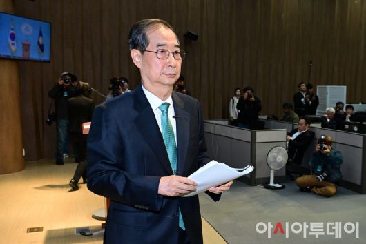 아시아투데이 이병화 기자 = 한덕수 전 국무총리가 2일 국회 소통관에서 '국민께 드리는 약속'을 주제로 제21대 대통령 선거 출마를 선언을 마친 뒤 회견장을 나서고 있다. ⓒ "젊은 파워, 모바일 넘버원 아시아투데이"