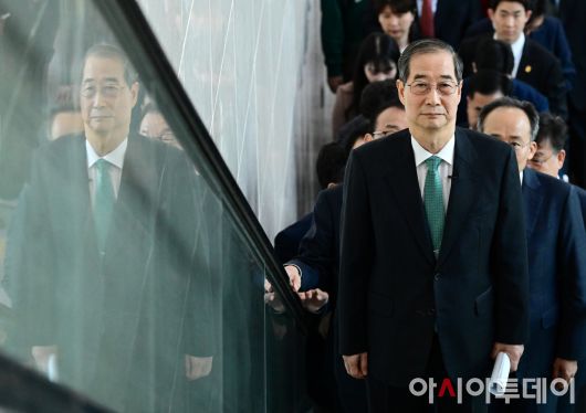 아시아투데이 이병화 기자 = 한덕수 전 국무총리가 2일 국회 소통관에서 '국민께 드리는 약속'을 주제로 제21대 대통령 선거 출마를 선언하기 위해 입장하고 있다.