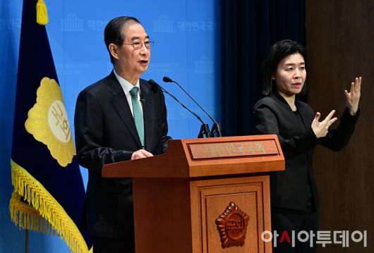 아시아투데이 이병화 기자 = 한덕수 전 국무총리가 2일 국회 소통관에서 '국민께 드리는 약속'을 주제로 제21대 대통령 선거 출마를 선언하고 있다. ⓒ "젊은 파워, 모바일 넘버원 아시아투데이"