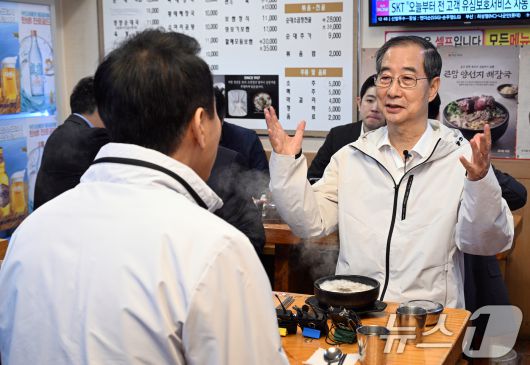 (서울=뉴스1) 김명섭 기자 = 제21대 대통령 선거에 출마한 한덕수 전 총리가 2일 서울 종로구 한 식당에서 오세훈 서울시장과 오찬 간담회를 하고 있다. (공동취재) 2025.5.2/뉴스1