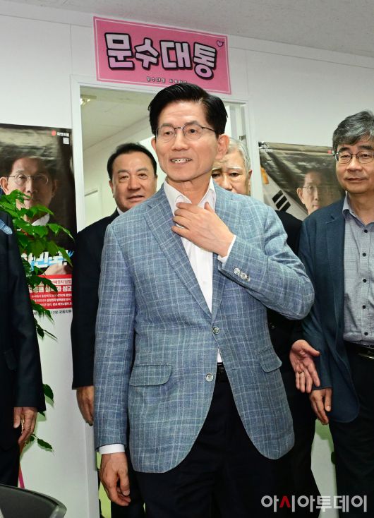 아시아투데이 이병화 기자 = 김문수 국민의힘 대선 경선 후보가 2일 서울 여의도 캠프에서 열린 청년정책 제안서 전달식에 참석하고 있다.