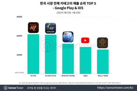 ‘RF 온라인 넥스트’ 출시 이전 한국 시장 모바일 게임 퍼블리셔 매출 순위 7위에 머물렀던 넷마블은, 게임 출시 이후 2위로 뛰어올랐다. 현재 넷마블의 모바일 매출은 ‘RF 온라인 넥스트’를 선두로 ‘레이븐 2’, ‘블레이드 & 소울 레볼루션’ 순으로 구성되어 있다. 센서타워는 넷마블이 기존 인기 IP의 잠재력을 극대화하고, 속편 개발 및 모바일 최적화 역량을 바탕으로 시장 경쟁력을 강화하고 있다고 분석했다.