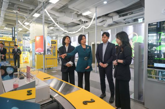 오영주 중소벤처기업부 장관이 2일 서울 성동구 올리브영N 성수를 방문해 매장을 둘러보고 있다.<중기부> |