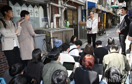 쪽방촌에서 열린 한덕수 전 국무총리의 백브리핑