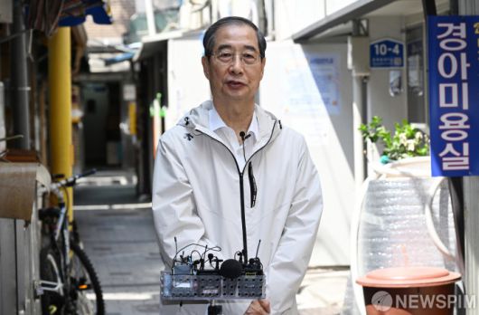 [서울=뉴스핌] 양윤모 기자 = 제21대 대선 출마를 선언한 한덕수 전 국무총리가 2일 오후 서울 종로구의 식당에서 오세훈 서울시장과의 오찬 회동을 마치고 백브리핑을 하고 있다. [공동취재] 2025.05.02 yym58@newspim.com