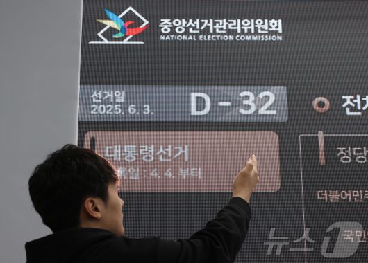 제21대 대통령 선거를 32일 앞둔 2일 경기 과천시 중앙선거관리위원회 선거종합상황실에서 직원이 남은 선거일수를 바라보고 있다. ⓒ News1 김영운 기자 |