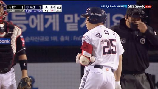 양의지가 1루로 걸어간 상황에서 김재환이 우중간 2타점 2루타를 치며 양의지가 홈을 밟았다.