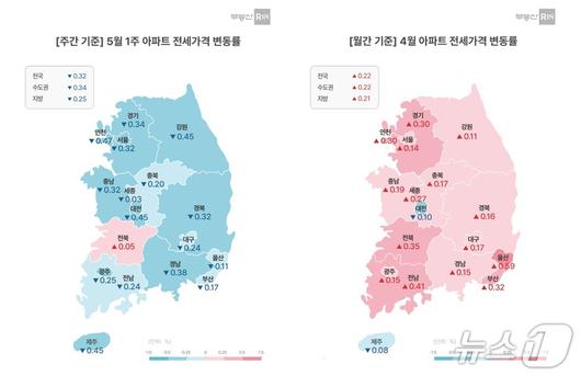 (서울=뉴스1) 오현주 기자6월 조기 대선을 앞두고 정국 불안이 장기화하면서 5월 첫째 주 전국 아파트값이 전주 대비 0.3%가량 하락했다.