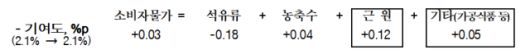 김 부총재보는 "소비자물가 상승률은 석유류 가격 하락에도 식료품과 개인 서비스 가격의 오름폭이 확대되며 전월 수준을 유지했다"고 분석했다.