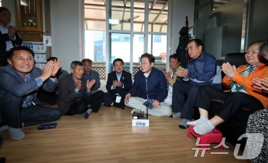 (화천=뉴스1) 이재명 기자 = '골목골목 경청투어 : 접경벨트편'에 나선 이재명 더불어민주당 대통령 후보가 2일 오후 강원 화천군에 위치한 경로당을 찾아 어르신들과 대화를 하고 있다. (공동취재) 2025.5.2/뉴스12expulsion@news1.krCopyright ⓒ 뉴스1. All rights reserved. 무단 전재 및 재배포, AI학습 이용 금지.
