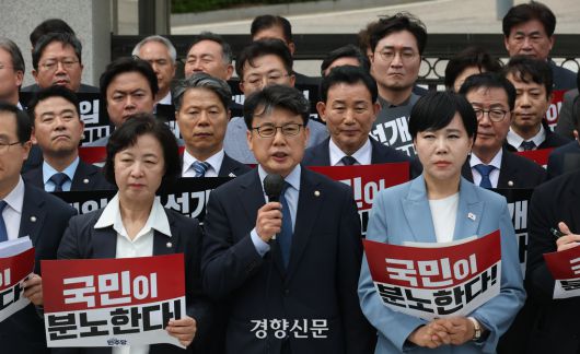진 정책위의장은 “사실 민주당이 안일했다”며 “조금 전 우리가 대법원은 각성하고 규탄하자고 외쳤지만 사실은 탄핵하자고 외치고 싶다”고 말했다. 그는 “탄핵소추권을 통해 최소한 직무는 정지시킬 수 있다”며 “그러니 더는 망설일 것이 아니라고 생각한다”고 했다.