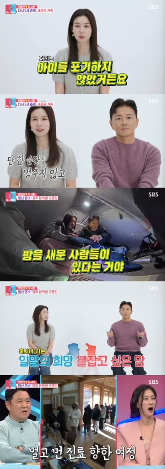 아침 일찍 일어나 몸에 좋은 영양제를 챙겨 먹고 새벽 5시에 난임 전문으로 유명한 경주의 한의원 오픈런에 나서기도 했다. 진태현은 "거기 오신 분들의 마음을 저희는 너무 잘 안다. 희망을 부여잡는 거다. 가능성과 희망을 보면서 위로를 받는 것"이라며 동지애를 느꼈다.