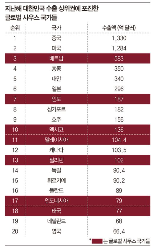 지난 3월 26일 정인교 산업통상자원부 통상교섭본부장은 트럼프발 관세 파도가 임박했을 당시 “글로벌 사우스 지역을 중심으로 수출 시장 다변화를 촉진하겠다”고 했다. 조주완 LG전자 최고경영자(CEO)도 같은 날 열린 정기 주주총회에서 “올해부터는 기존 성장전략에 ‘지역’이라는 전략의 축을 더해 성장 잠재력이 높은 유망지역에서의 성장 가속화를 추진할 것”이라며 ‘글로벌 사우스’를 강조했다. 지난 2월 국회에서는 김건 국민의힘 의원 주최로 관련 전문가들이 모여 ‘글로벌 사우스의 부상과 대한민국의 외교 전략’이라는 포럼을 열며 이 지역에 대한 공론을 주도하기도 했다.