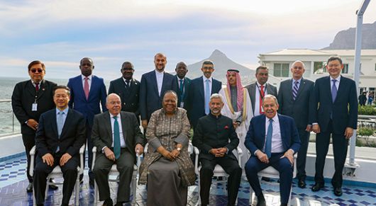 지난 2023년 6월 남아프리카공화국 케이프타운에서 열린 외교장관 회의에 참석한 모인 글로벌 사우스 국가의 외교 수장들. 브릭스 회원국인 브라질, 러시아, 인도, 중국, 남아프리카공화국 등을 포함해 이집트, 콩고민주공화국, 가봉, 부룬디, 사우디아라비아, 이란, 아랍에미리트, 인도네시아, 우루과이, 아르헨티나 등 글로벌 사우스에 해당하는 각 대륙의 국가들이 회의에 골고루 참석했다. <사진 연합뉴스> |