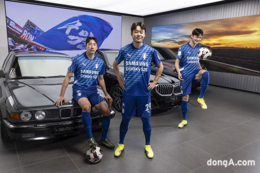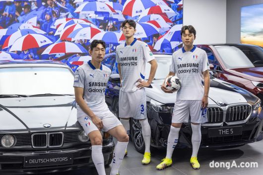레트로 유니폼은 수원의 상징인 블루 컬러와 날개 문양을 중심으로 클래식한 감성을 살렸다. 디테일에는 지난 30년간 팬들과 함께한 구단의 여정을 녹여냈다. 화보 촬영에는 2004·2008년 우승 주역 곽희주, 현 주장 양형모, 신예 고종현이 참여해 세대를 아우르는 수원의 과거와 미래를 상징적으로 표현했다.