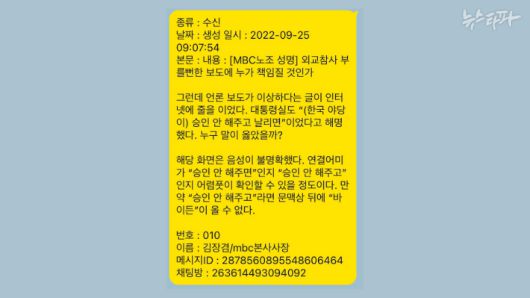 두 사람의 사적인 대화로 치부하기엔 어려운 내용으로 판단해 오늘(2일) 일부 내용을 공개한다.