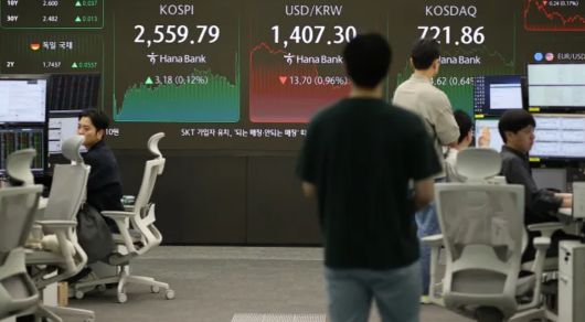2일 서울 중구 하나은행 본점 딜링룸에서 직원들이 업무를 보고 있다. 연합뉴스 |