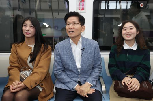 김 후보는 이날 청년 지지자들과 함께 광역급행철도(GTX)를 타고 동탄역과 수서역을 오가며 시민들에게 지지를 호소했다. GTX는 김 후보가 경기도지사로 재직하던 시절 추진을 시작한 사업이다.