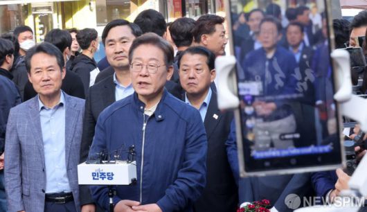 [인제=뉴스핌] 최지환 기자 = 이재명 더불어민주당 대선 후보가 '골목골목 경청투어' 접경지역 방문 이틀째인 2일 오후 강원 인제군 원통시장에서 주민들과 소통을 마치고 취재진 질문에 답변하고 있다. 2025.05.02 choipix16@newspim.com