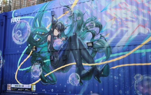 행사장은 리틀 머메이드를 그린 대형 벽화, 리틀 머메이드의 거품 속 세계를 구현한 포토존, 경품 부스로 구성됐다. 하늘에는 대형 벌룬이 떠있었는데, 컬트적인 인기로 공식 굿즈까지 만들어진 ‘도로롱’ 스타일의 리틀 머메이드가 그려져 있어 방문객들을 웃음짓게 만들었다.