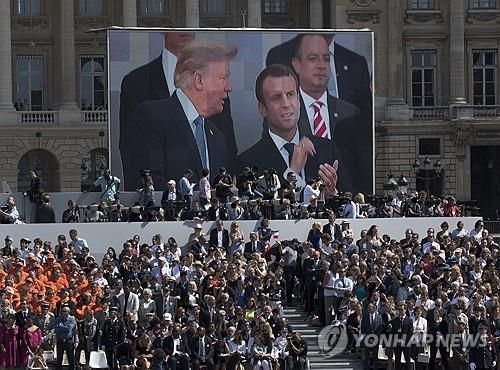 2017년 프랑스의 군사 퍼레이드 참석한 트럼프. AP 연합뉴스 |