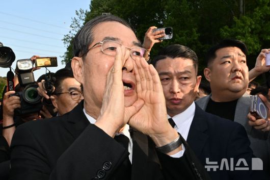 [광주=뉴시스] 이영주 기자 = 한덕수 전 국무총리가 2일 오후 광주 북구 운정동 국립5·18민주묘지에서 오월 영령을 향한 참배에 나서던 중 참배를 반대하는 광주시민들에 가로막혀 돌아선 뒤 시민들을 향해 읍소하고 있다. 2025.05.02. leeyj2578@newsis.com |