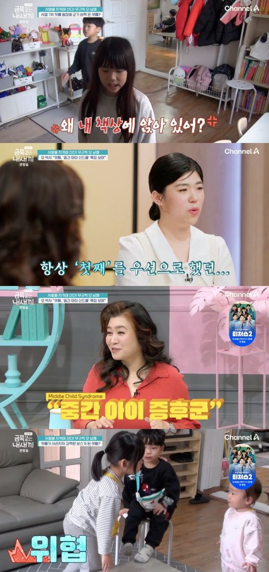 이날 첫째는 자기 자리에 앉아있는 셋째를 보며 “야 씨 왜 내 책상에 앉아 있어”라며 화를 냈다. 남다른 권력을 보인 이유는 바로 엄마가 첫째로부터 엄마를 대신해 동생들을 봐달라고 부탁한 것에 비롯됐다고. 이에 오은영 박사는 셋째를 향해 “중간 아이 증후군”이라고 말하며 애매한 위치에 있다고 말했다.