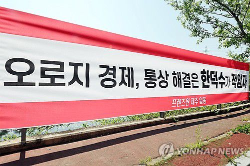 원써클, 프렌즈원이라고 밝힌 단체들은 '이번에 호남출신 대통령 한덕수로', '좌우를 뛰어넘는 리더십 한덕수', '오로지 경제, 통상 해결은 한덕수가 적임자'라고 적힌 현수막을 내걸었다.