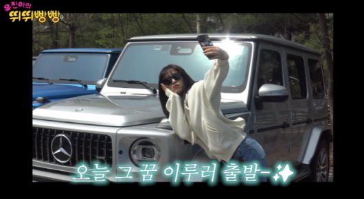이날 영상에서 안유진은 메르세데스 벤츠를 몰고 나들이에 나섰다. '지락이의 뛰뛰빵빵' 이후 1년만에 메르세데스 벤츠와 다시 만나게 된 안유진은 "저 너무 타보고 싶었다. (지바겐이) 운전해 보고 싶었던 차였다. 드림카였다"라고 기쁨을 드러냈다.