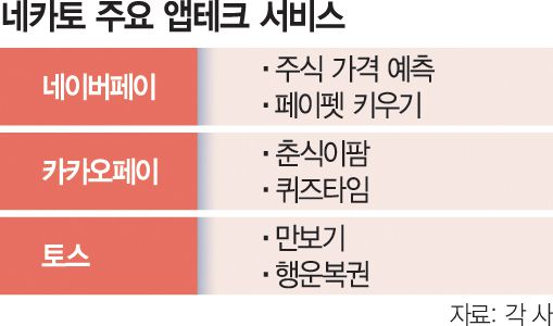 고물가가 이어지면서 지출을 최소화하는 짠테크(짠돌이와 재테크의 합성어)가 유행하는 가운데 스마트폰 애플리케이션을 활용해 돈을 버는 앱테크(앱과 재테크의 합성어)가 주목받고 있다. 만보기나 뽑기·퀴즈 등 간단한 활동으로 포인트나 치킨 등 소소한 보상을 받을 수 있는가 하면, 여행 수요 등 실생활에 도움되는 각종 할인·적립 이벤트들도 쏟아지고 있기 때문이다. 국내 3대 핀테크 기업인 네이버페이와 카카오페이·토스는 이러한 앱테크 유행을 고객 유인의 기회로 삼고 차별화된 콘텐츠를 선보이고 있다.