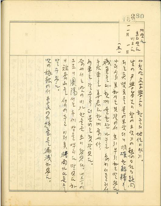 낮에 윤 학자님이 찾아오셨기에 열하일기의 의문되는 점 몇 곳을 물어보았더니 명확한 해석을 나리시지 못하시는 것 같아서 흐지부지하고 말았다.