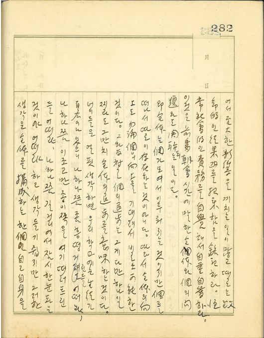 설사 있다더라도 그것은 우리와 우리의 자손에게 불행을 가져올 것이다. 그리고 그 우리란 또 따로이 있는 것이 아니고 “나”로써 구성단위(個)를 삼는 집합체요, 조직체다. 그 구성단위인 여러 “내”가 모두 서로 미루고 일하지 않는다면, 책임을 지지 않는다면, 누가 일하고 누가 책임을 질 것인가. 우선 나부터 일하고 나부터 책임을 지자. 나 혼자만이라도 기울어져 가는 이 전체를 바로잡아 나가자. 이래야만 진정한 개의 자기성찰이라고 할 수 있을 것이다. 진정한 개의 자각이라고 할 수 있을 것이다. 전체가 잘 되어 나가고 못 되어 나가는 것은 이러한 자각에 철저한 개가 하나라도 더 많고 적음에 달린 것이다.