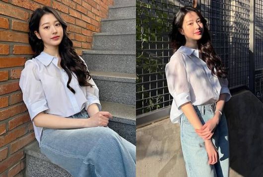 장다아는 은은한 하늘빛 셔츠에 라이트 워싱 와이드 데님을 매치, 꾸미지 않은 듯 자연스러운 스타일로 눈길을 끌었다.사진=장다아 SNS |