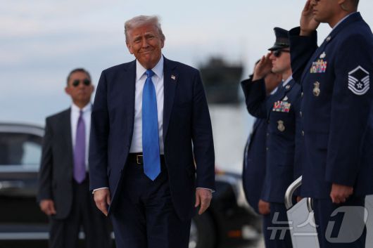 도널드 트럼프 미국 대통령이 지난 1일(현지시간) 미국 앨라배마주 터스칼루사 국립 공항에 도착한 뒤 차량으로 이동하고 있다. ⓒ 로이터=뉴스1 ⓒ News1 류정민 특파원