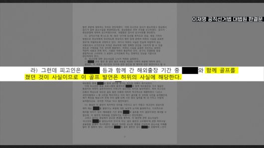 분명한 건 이 후보가 ‘김문기와 골프를 치지 않았다’고 말한 적이 없다는 사실입니다. 그런데 대법원은 발언의 전체적인 취지와 일반 선거인의 인식을 들먹입니다. 일반인들이 보기에 김문기와의 ‘교유행위’를 부인하는 취지로 들린다는 겁니다.