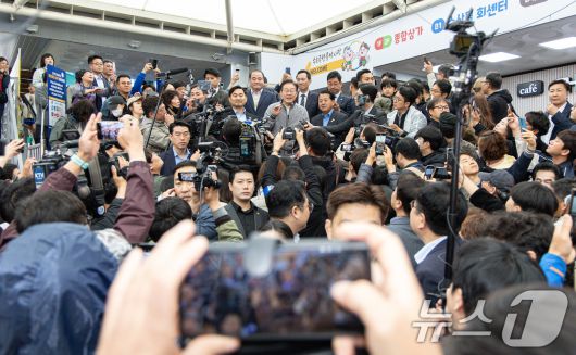 (속초=뉴스1) 이재명 기자 = '골목골목 경청투어 : 동해안벨트편'에 나선 이재명 더불어민주당 대통령 후보가 3일 오전 강원 속초시 중앙로 속초관광수산시장에서 연설을 하고 있다. 2025.5.3/뉴스12expulsion@news1.krCopyright ⓒ 뉴스1. All rights reserved. 무단 전재 및 재배포, AI학습 이용 금지.