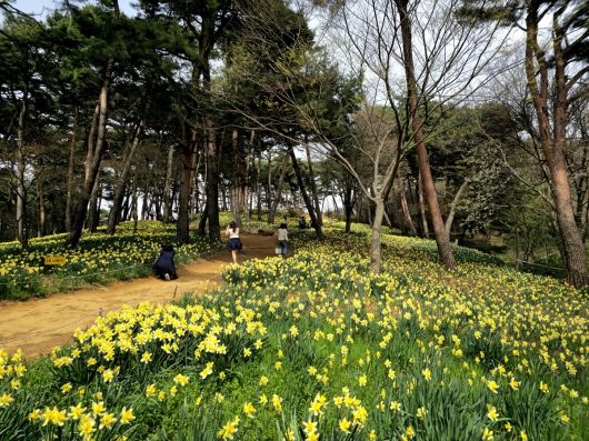 유기방 가옥 입구부터 노란 수선화가 방긋 웃으며 반긴다. 삼각대까지 챙긴 연인들은 꽃보다 예쁜 서로를 찍어주느라 분주하다. 오랜만에 노모 손을 잡고 나들이 나온 50대 딸이 “우리 엄마 꽃보다 훨씬 예쁘네”라며 엄지를 치켜세우자 노모 얼굴엔 소녀처럼 수줍은 미소가 번진다. 언덕을 따라 펼쳐지는 수선화 물결은 가도 가도 끝이 나질 않는다. 태어나서 이렇게 많은 수선화가 한꺼번에 핀 풍경은 처음이다.