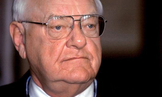 2006년 3월 조지 라이언 전 미국 일리노이주 주지사가 현직 시절의 뇌물수수 등 비리 혐의에 관한 재판을 받기 위해 법원에 출석하고 있다. AP연합뉴스 |