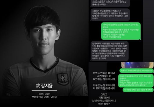 [스포츠투데이 김태형 기자] JTBC '이혼숙려캠프'에 출연했던 전 축구선수 강지용이 갑작스럽게 사망한 가운데, 아내 이다은 씨가 시어머니 A씨와 나눈 문자 내용을 공개하며 갈등이 수면 위로 올라왔다.