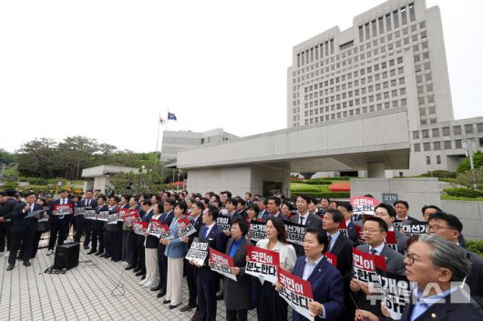신 수석대변인은 "민주당은 국정 공백을 초래한 데 대한 책임감을 갖고, 최소한의 자제와 이성을 회복하기를 바란다"며 "파기환송심 재판부는 어떤 외압에도 흔들리지 말고 오직 법리에 따라 정의롭고 공정한 판결을 내려주길 촉구한다"고 했다.